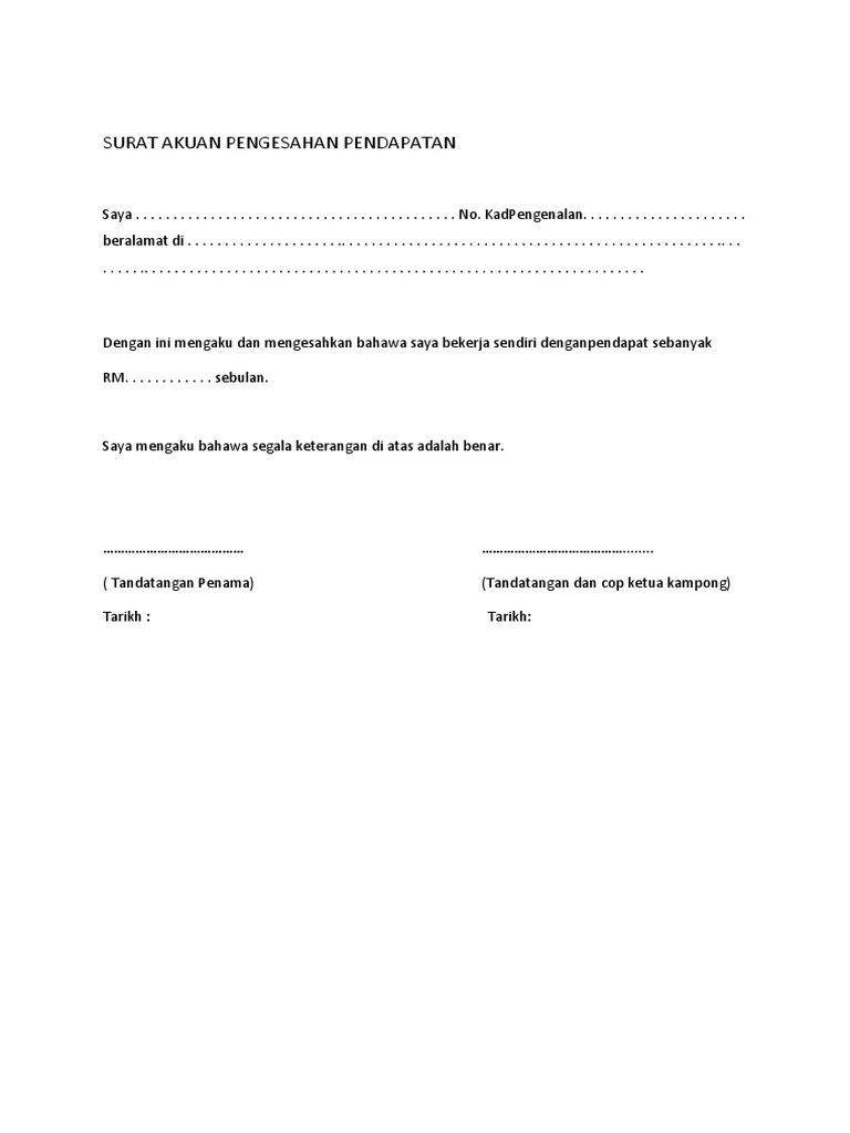Contoh surat akuan pendapatan sendiri surat akuan pengesahan pendapatan adalah khusus buat individu yang bekerja sendiri dan tidak mempunyai slip gaji.